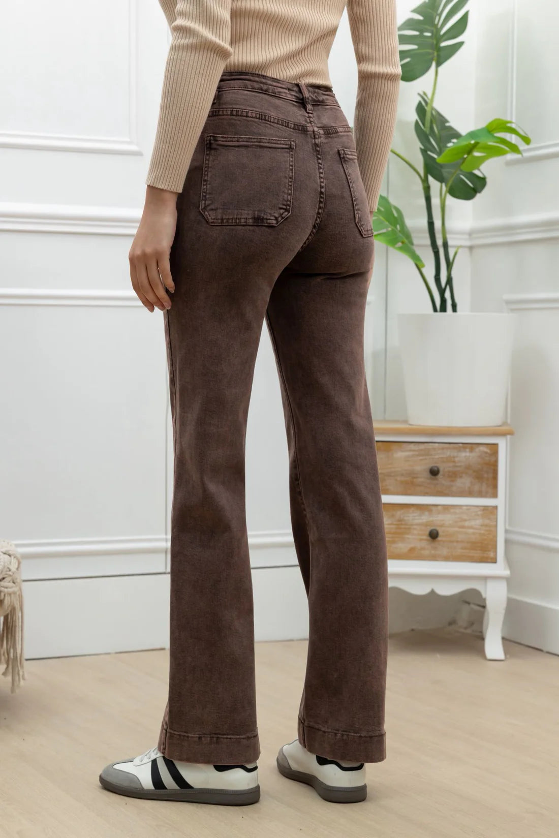 Chocolate Brown Flair Wide leg Jeans with Front Pocket Details 6-14