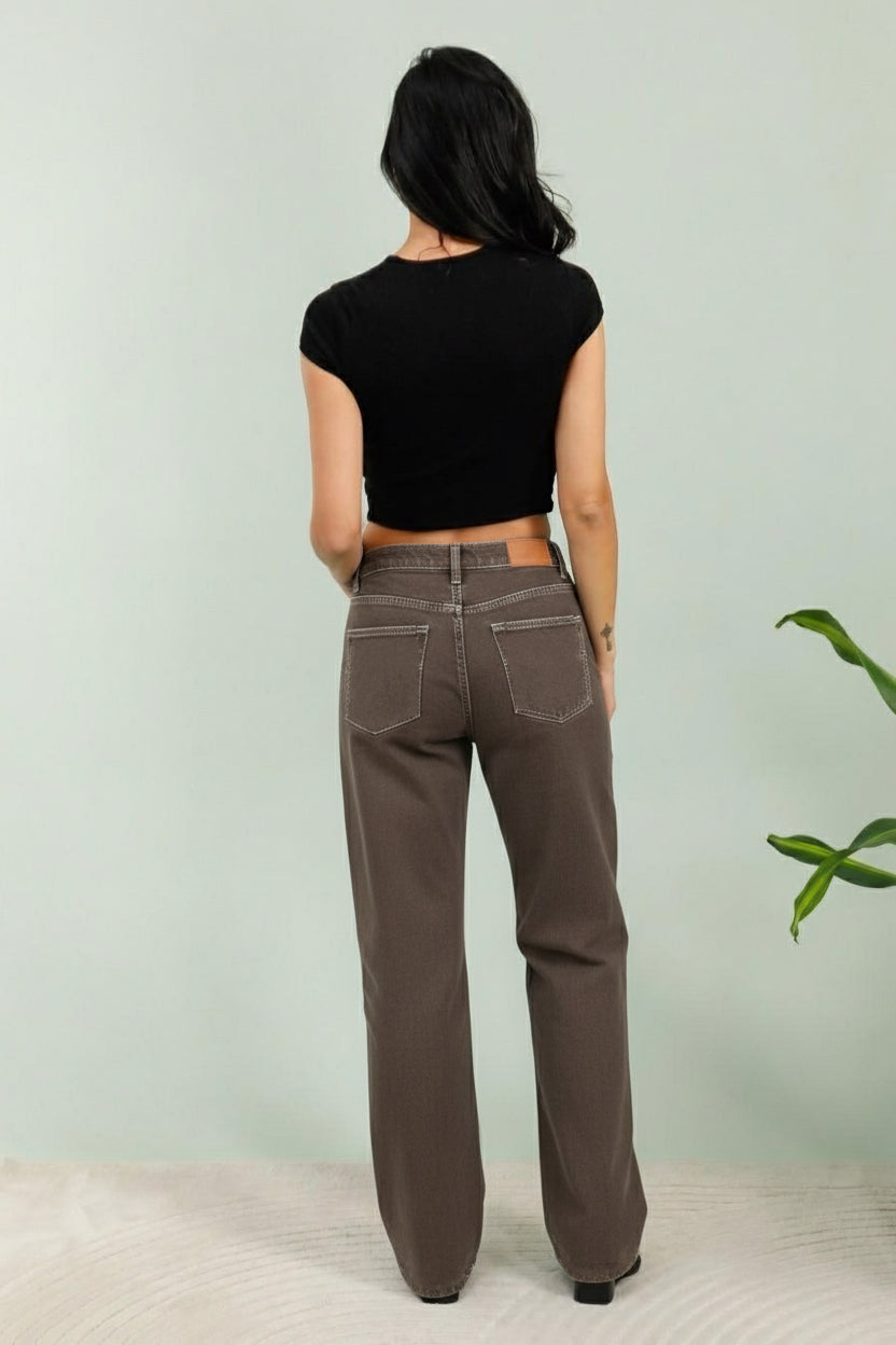 Chocolate brown white stitching detail jeans (6-14)