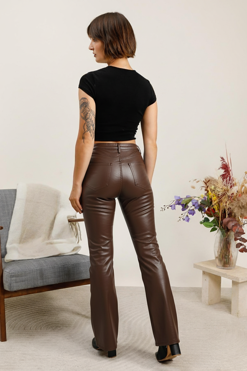 Dark Chocolate Brown Leather Look PU Jeans (6-14)